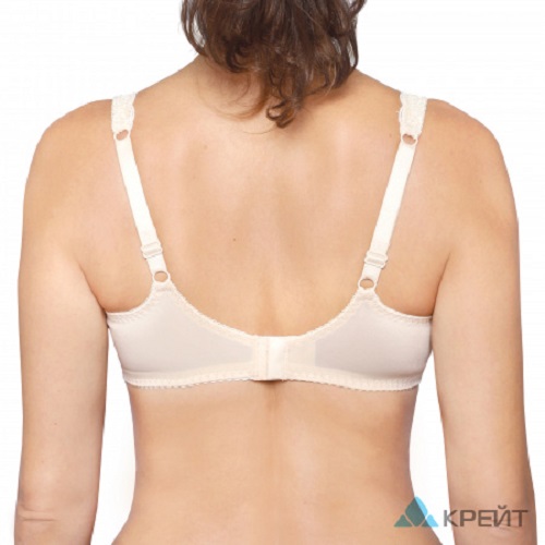 - Широкие кружевные бретели на спинке смещены к центру. Это предотвращает их соскальзывание с плеч и способствует правильному распределению давления на плечи и шею